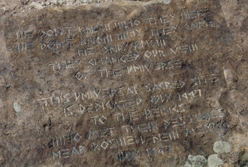 There are at least three popularly recognized “crash sites.” The general public is less aware of this, but many researchers note that the craft probably “skipped” near Roswell, leaving debris, but regaining altitude and finally crashing in Corona NM, appx 45 miles from its initial “crash.” The photos below are from the debris field nearest Roswell, designated by the city as “the” crash site.