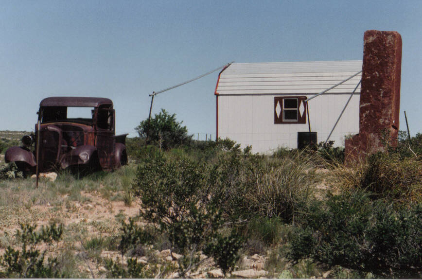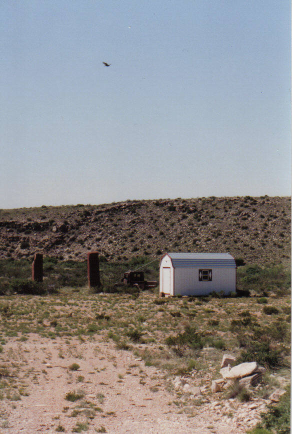 The shed, old truck and large stone markers were placed here for the 1997 UFO Festival.